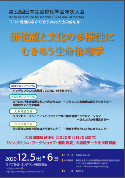 所属する日本生命倫理学会の年次大会が、2020年12月5日(土)・12 月6日(日)の2日間にわって開催されました。